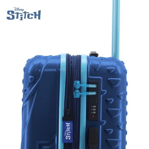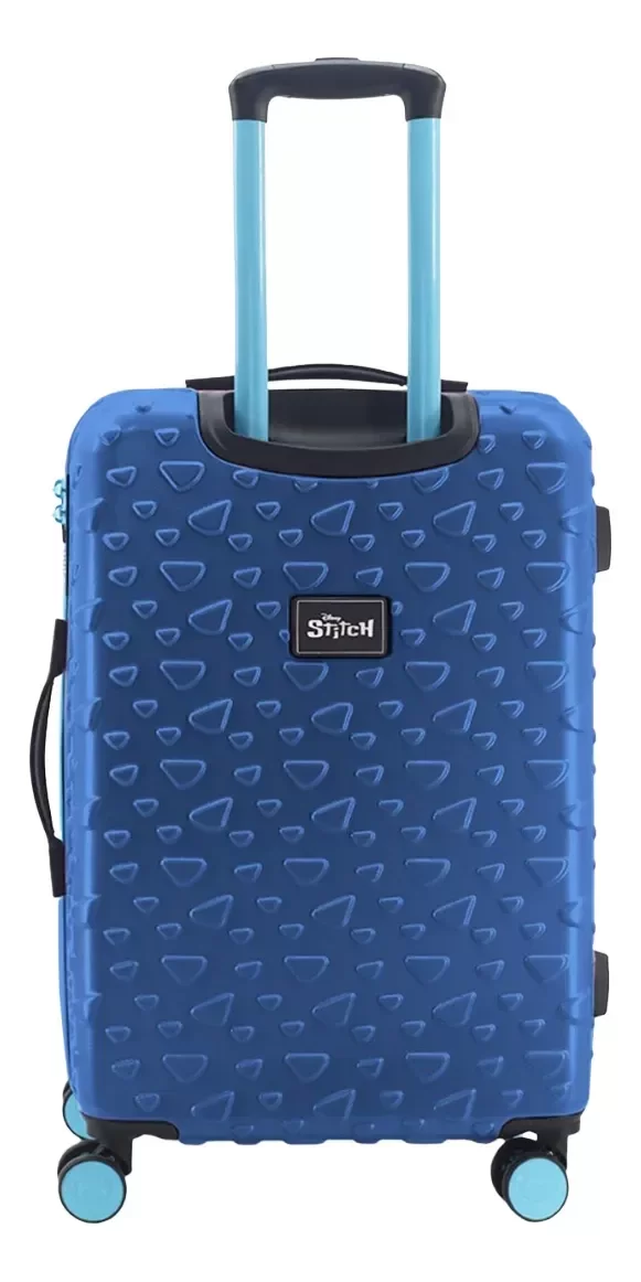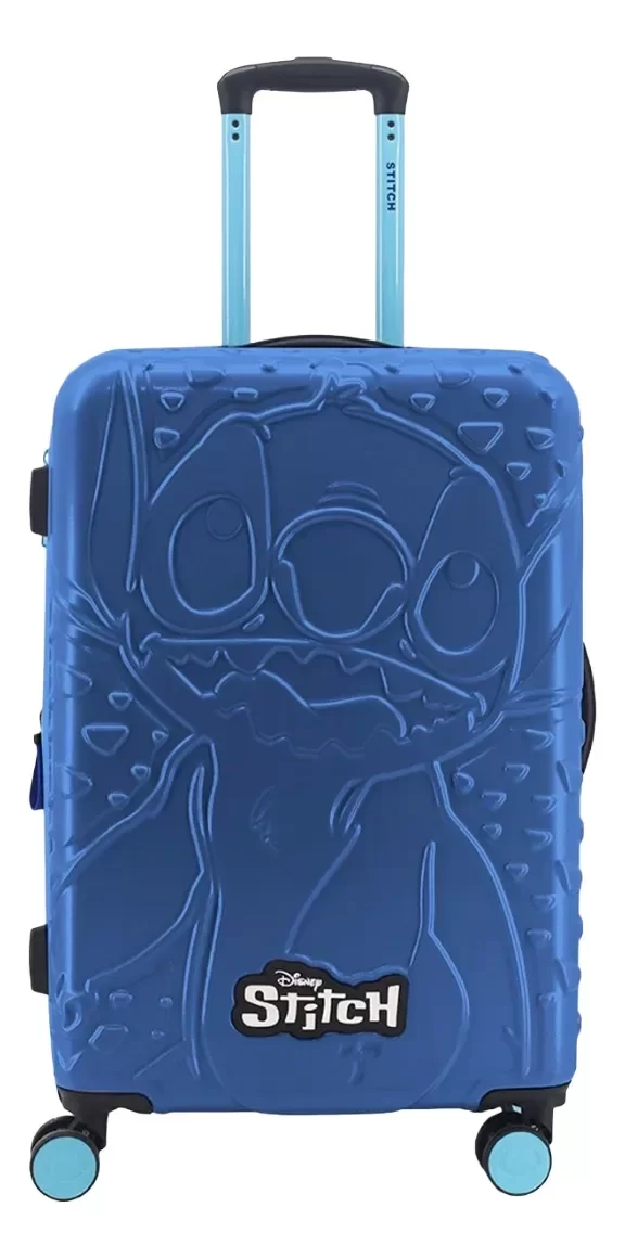Su estructura rígida con el relieve de Stitch en la parte frontal no solo le da un aspecto moderno y único, sino que también protege eficazmente tus pertenencias durante todo el viaje. Fabricada con materiales resistentes, es ideal para despachar en bodega y soportar los movimientos del transporte sin perder su forma ni su estilo.