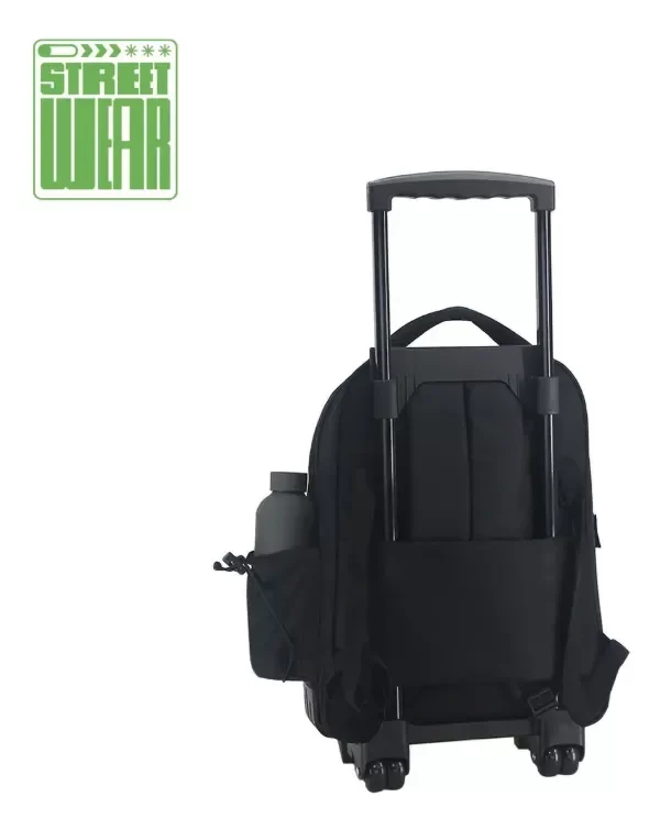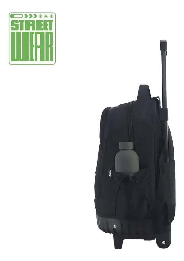Equipado con ruedas, este modelo facilita el transporte, evitando la carga excesiva en la espalda. Además, cuenta con tres bolsillos, incluyendo un espacio para botellas, lo que permite una organización eficiente de los útiles escolares. Su diseño a prueba de agua asegura que los materiales se mantengan secos en días lluviosos.